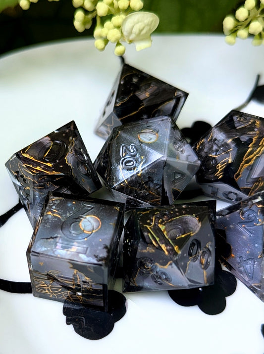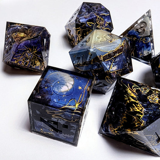 I have returned after a long break from dice making. I infuse Asian tradition into my dicemaking. From origami to sumi-e ink painting, every set is conversation starter! I hope to bring the magic of the East to your next gaming adventure.