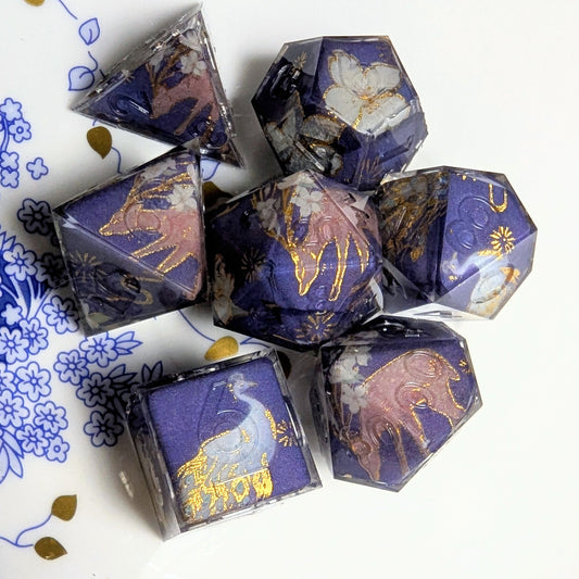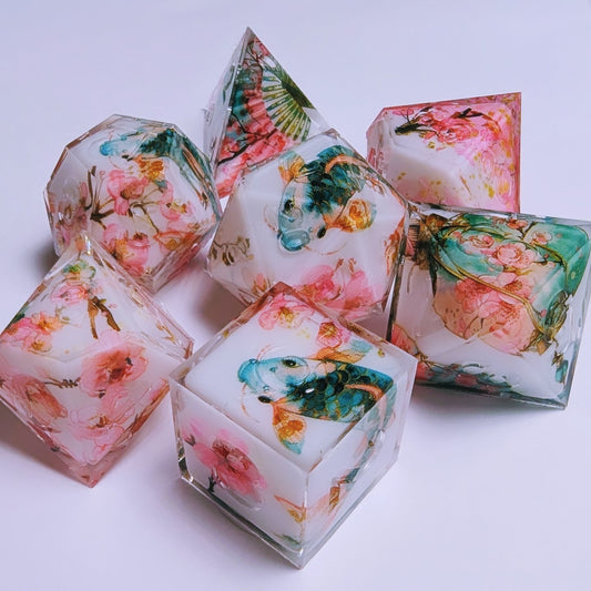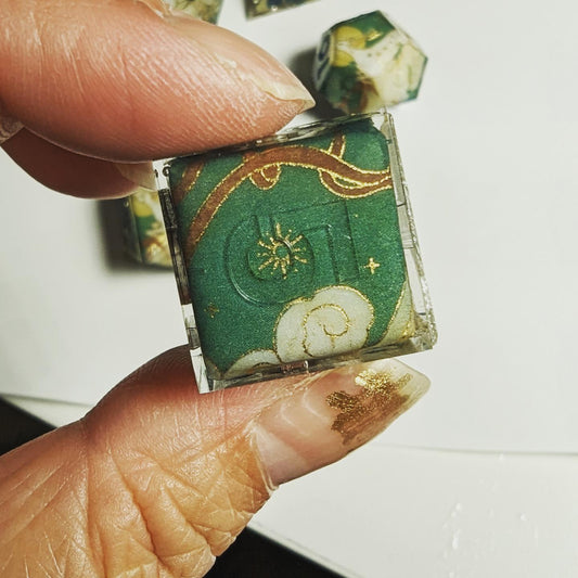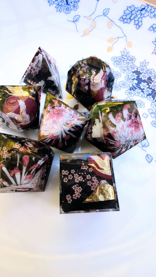 I have returned after a long break from dice making. I infuse Asian tradition into my dicemaking. From origami to sumi-e ink painting, every set is conversation starter! I hope to bring the magic of the East to your next gaming adventure.