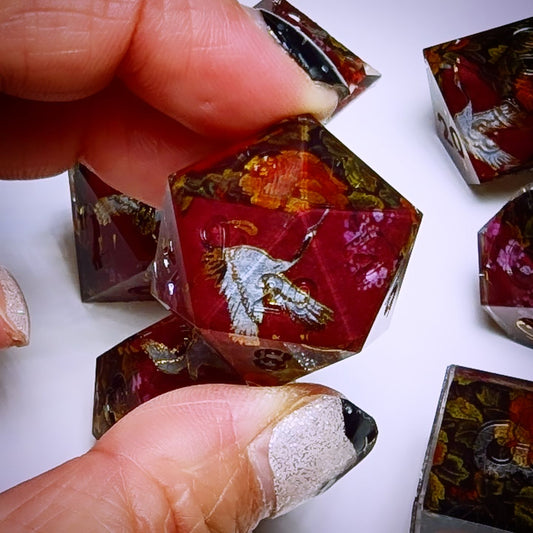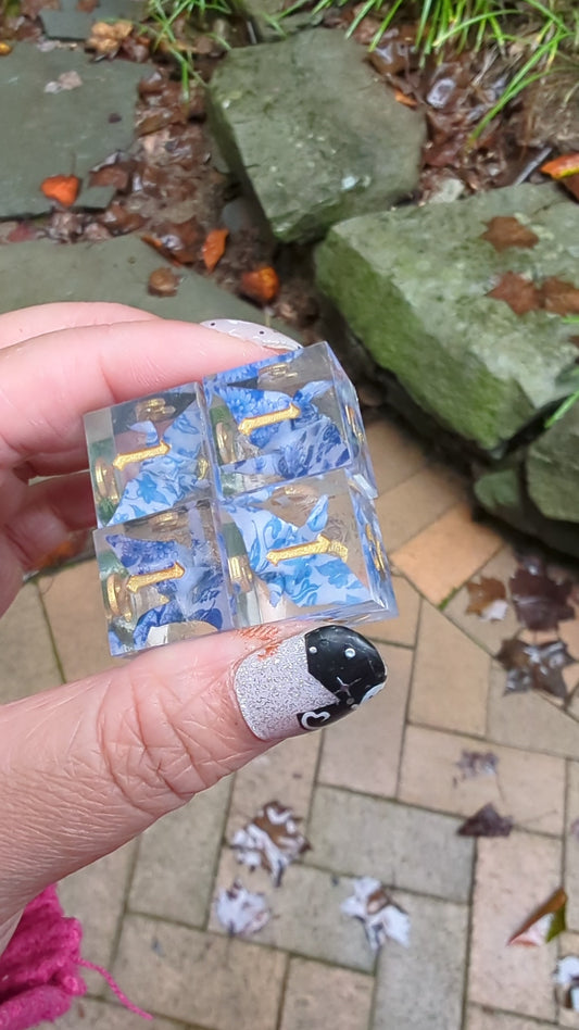 Sold outOrigami Crane Qing Hua Bird Dice Set