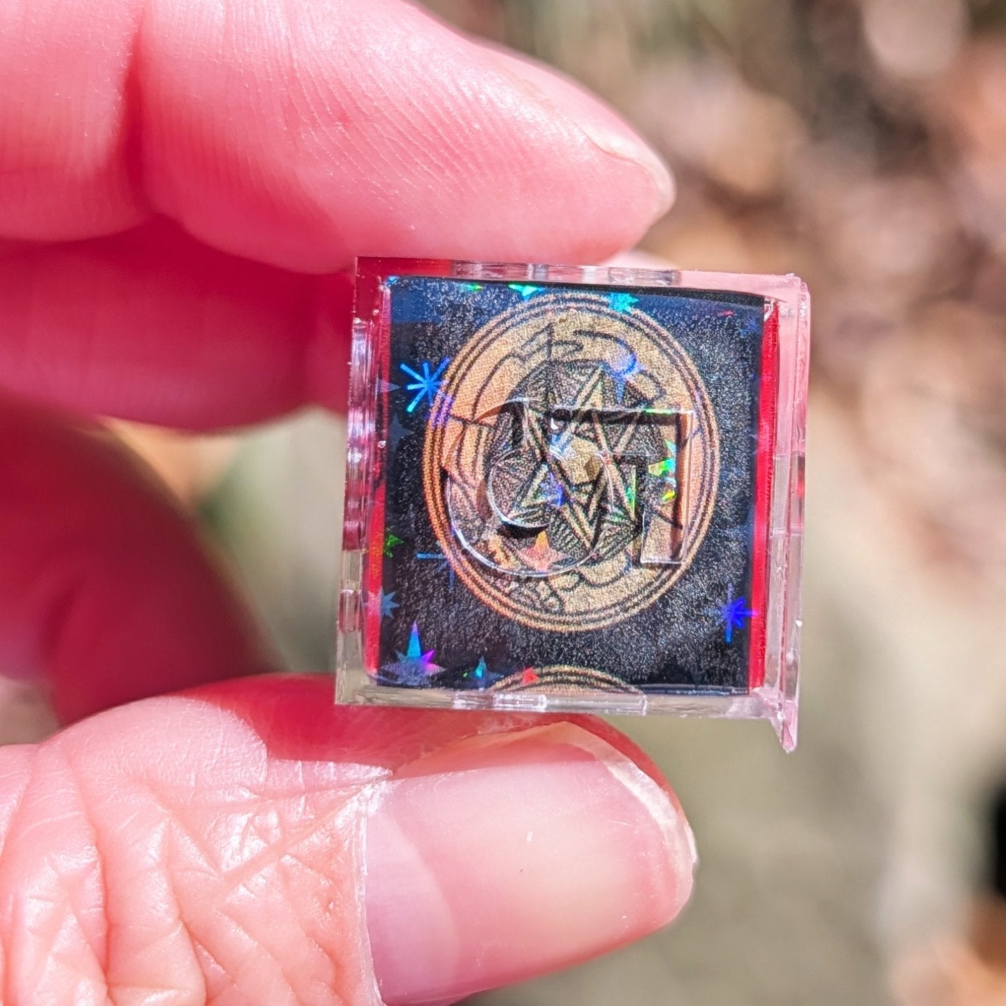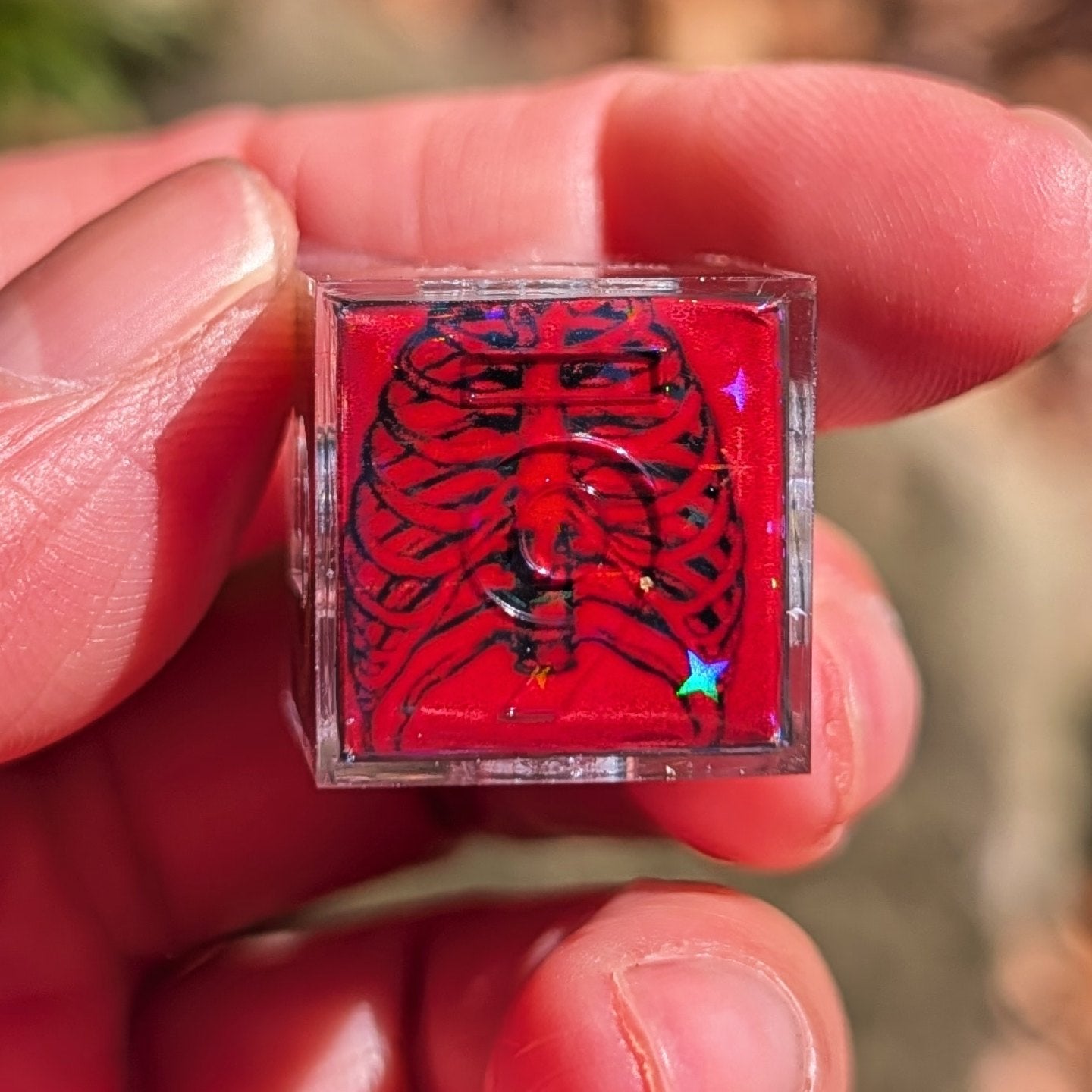 These dice are made with epoxy resin, a crystal-clear, durable material that’s perfect for showcasing detailed designs and delicate inclusions like washi tape or foil. It has a warm, glass-like finish that feels great in the hand and looks stunning on the table.