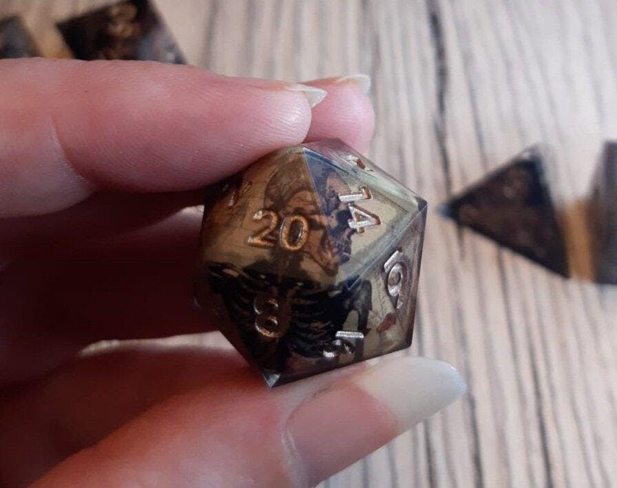 Handmade resin dice are pieces of functional art. With a little care, they’ll stay beautiful for many adventures to come.