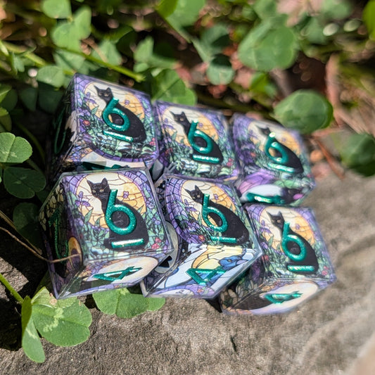 Single D6 or 6D6 Stained Glass Cat Washi Tape Dice