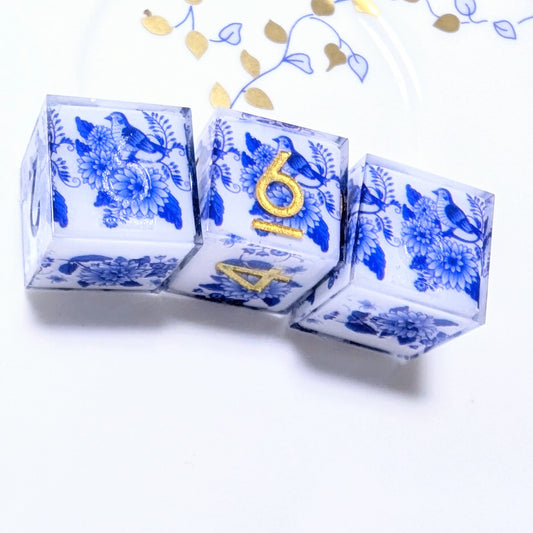 Kintsugi Qing Hua Porcelain Bird Washi Tape Dice Set