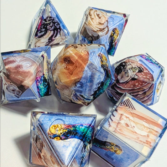 I have returned after a long break from dice making. I infuse Asian tradition into my dicemaking. From origami to sumi-e ink painting, every set is conversation starter! I hope to bring the magic of the East to your next gaming adventure.